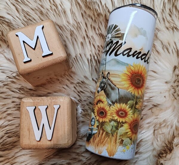This Beatle Car and Donkey Tumbler is a stainless-steel skinny tumbler. It's the perfect gift for a Lady To keep her hot drinks hot or her cold drinks cold for a long time. With its sleek white/sliver finish, double-walled construction, and durable stainless steel, it ensures both insulation and style.
